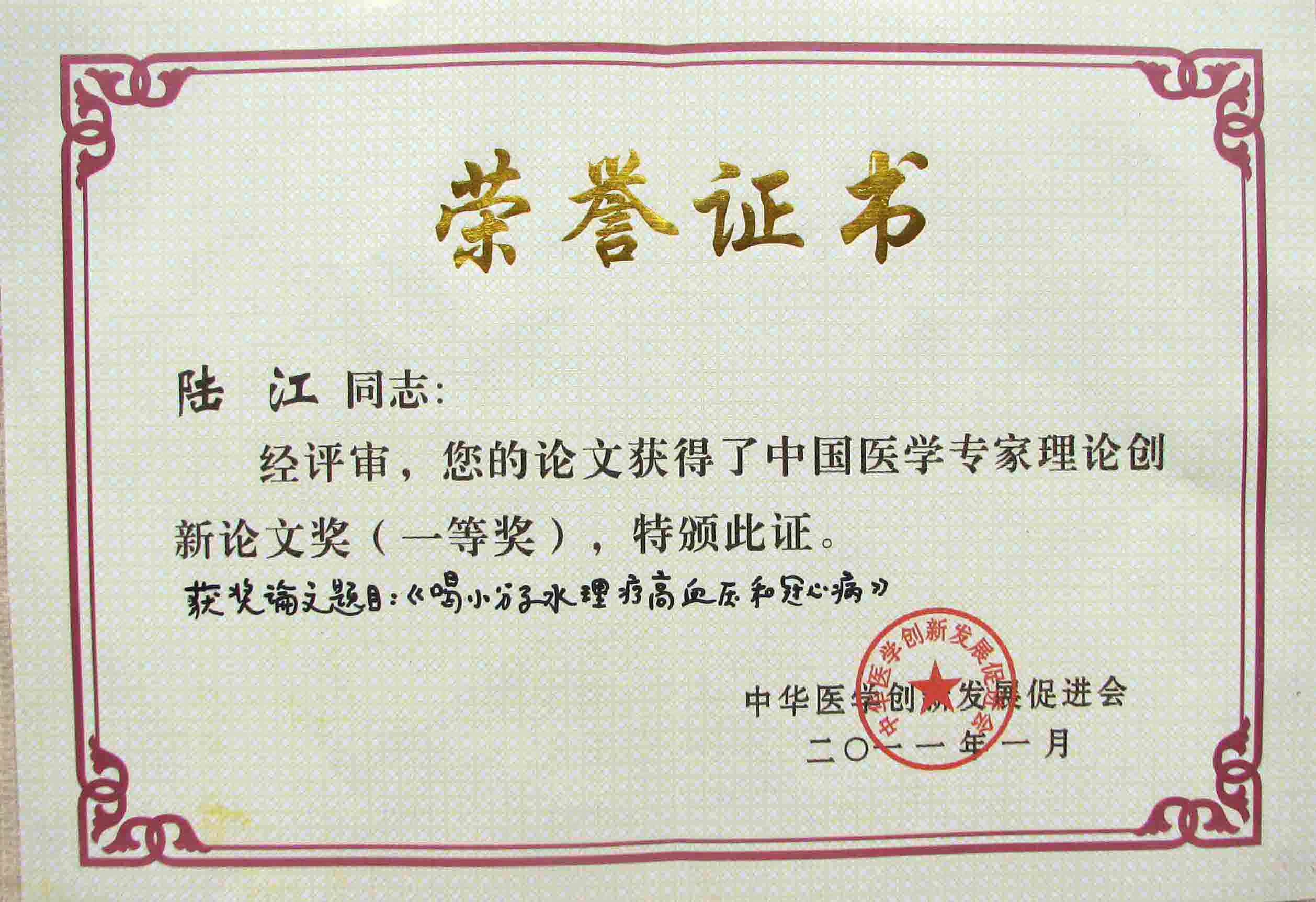 人類幾千年來患以上病癥需終生服藥,幾十年也不能治愈。可是我國南寧的高級工程師陸 江,于1990年想根治高血壓,研究發(fā)明了離子水瓶,處理出微小分子團水供飲用,經(jīng)過醫(yī)院臨床試用和專家鑒定,1999年獲中國發(fā)明專利權(quán),產(chǎn)品于2000年投放市場后一直跟蹤調(diào)查,據(jù)全國各地用戶反饋:祛除了高低血壓、糖尿病和冠心病,并使前列腺增生、咽喉炎、鼻竇炎、慢性氣管炎、支氣管炎、矽肺病、哮喘、慢性胃炎、腸炎、慢性膽囊炎、慢性腎炎、腎衰、膀胱炎、便秘、痔瘡、風(fēng)濕性關(guān)節(jié)炎和濕疹皮炎及中風(fēng)后遺癥等病癥不藥而愈。為什么喝微小水能治20多種病?陸 江從1991年德國科學(xué)家發(fā)現(xiàn)細(xì)胞膜水通道僅為2納米獲得啟發(fā),認(rèn)為多種器官患病是因細(xì)胞脫水,不能正常代謝和分裂增殖,才使器官細(xì)胞減少致衰弱萎縮而形成細(xì)胞缺水性病癥。22年來的實踐有力地支持了“細(xì)胞脫水致病”這一重要論點,表明喝微小水可滿足細(xì)胞的生理需求,補水就能祛病,是生命科學(xué)新亮點。